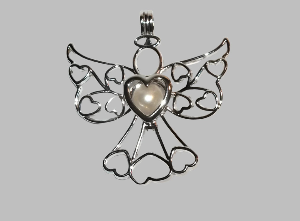 Silver plated angel cage holds pearls up to 8mm. Create different looks with easy to change cage and match your necklace with your current colors or moods.