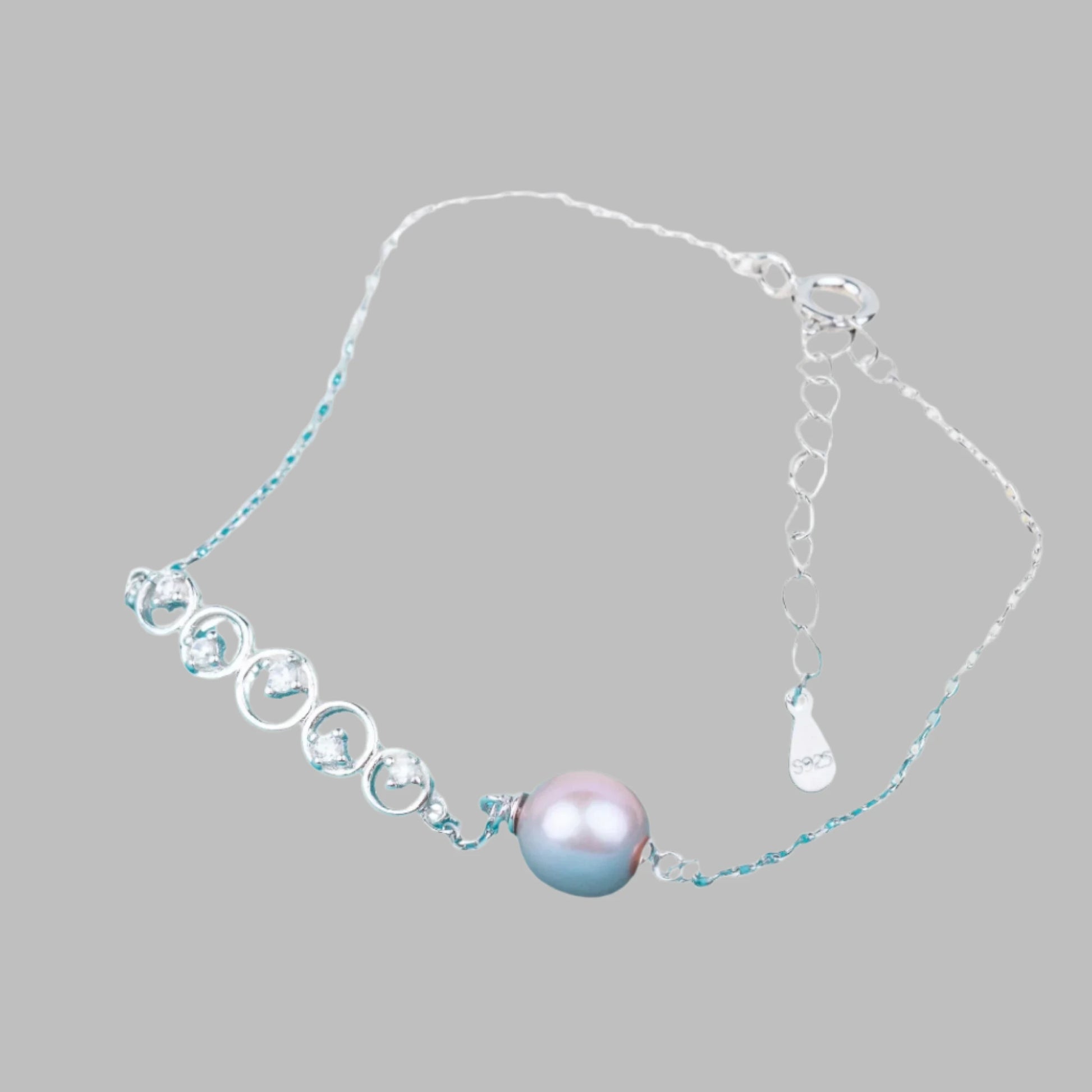 Fall in love with this delicate bracelet. Your pearl sits next to five circled CZs. It sure to steal your breath away.Comes in both freshwater and Edison pearls