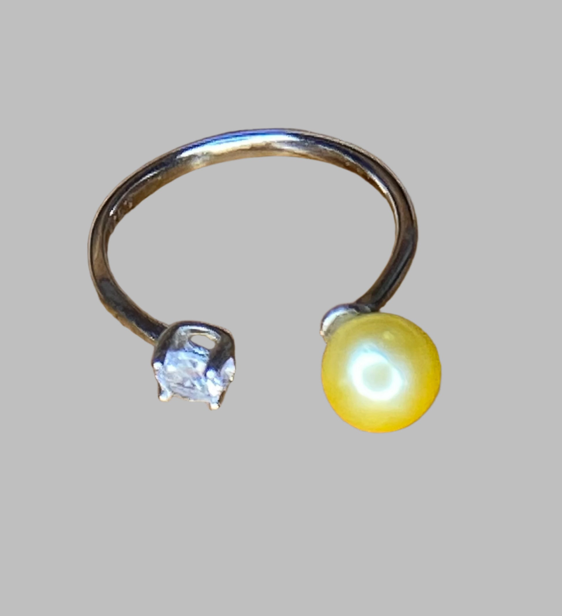 Be a diva in his beautiful collection. This sterling silver open style ring features a stunning CZ next to your beautiful pearl. Pairs well with the Diva Collection necklace and earrings as well.