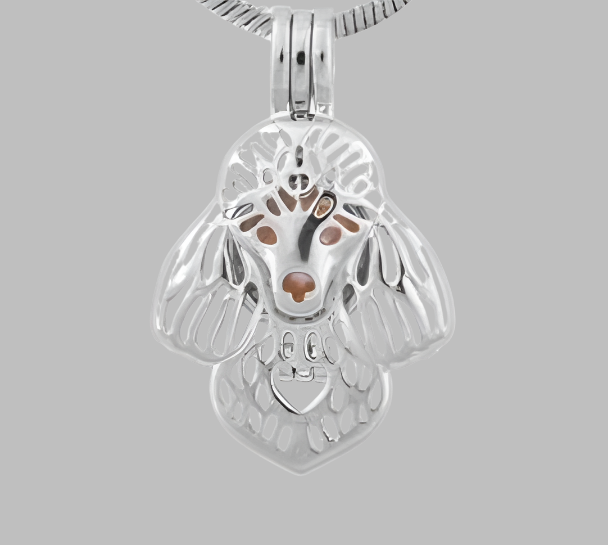 Silver plated dog breed cages pearls up to 8mm. Create different looks with easy to change cage and match your necklace with your current colors or moods.