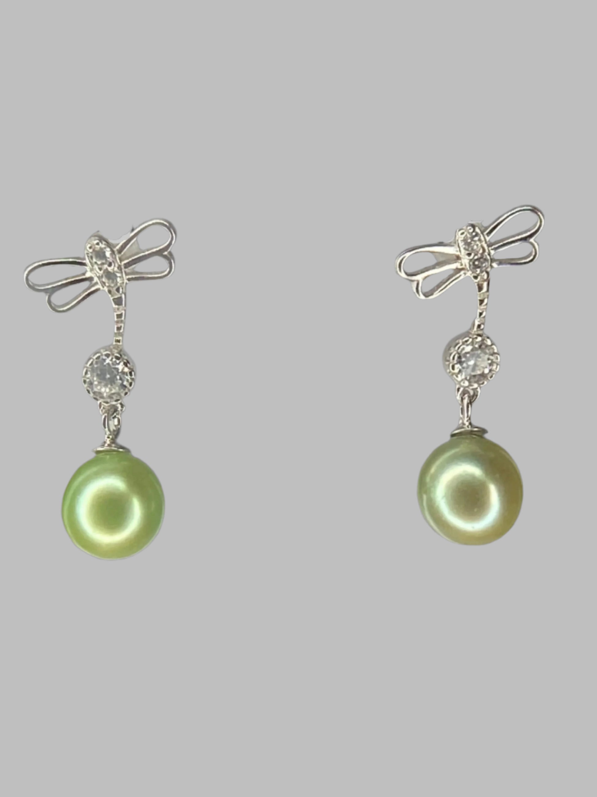 Sterling silver dragonflies earrings are covered in CZs.