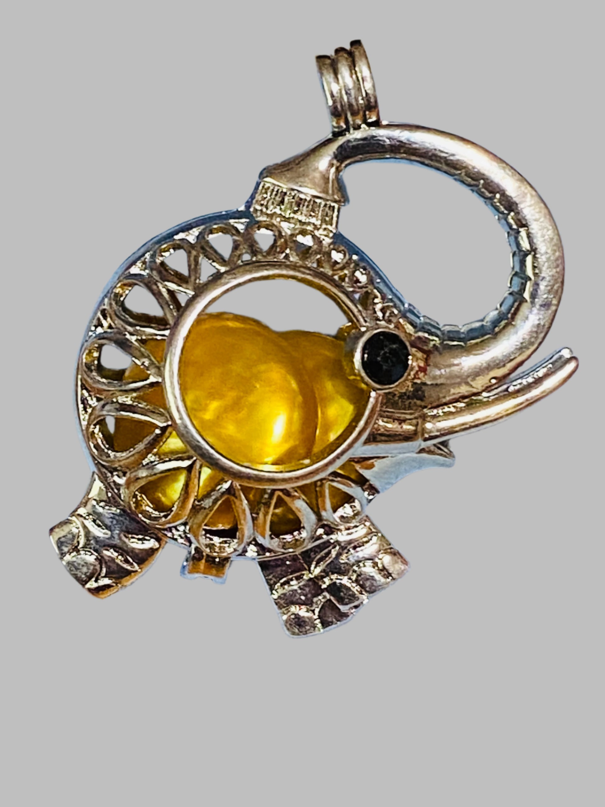 Silver plated elephant Edison cage holds a pearl up to 16mm (shown with a coin pearl). Best used with a pearl over 12mm or a coin pearl. Create different looks with easy to change cage and match your necklace with your current colors or moods.