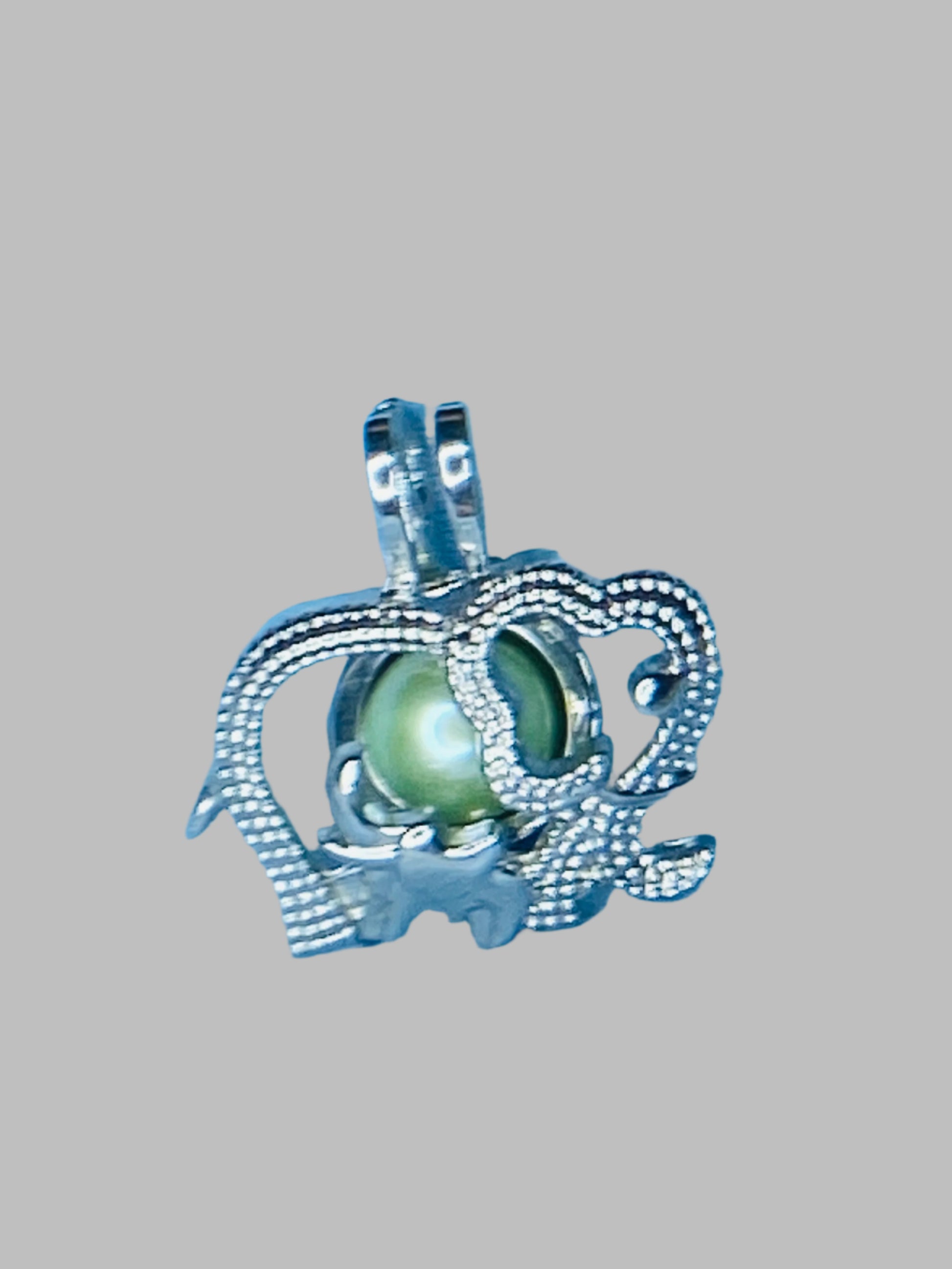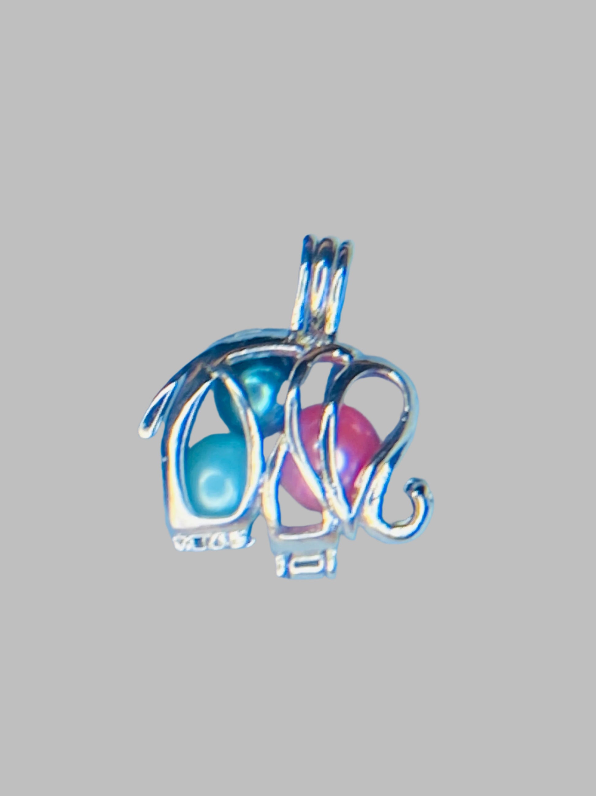 Adorable silver played elephant freshwater cage holds multiple pearls up to 8mm. Create different looks with easy to change cage and match your necklace with your current colors or moods.