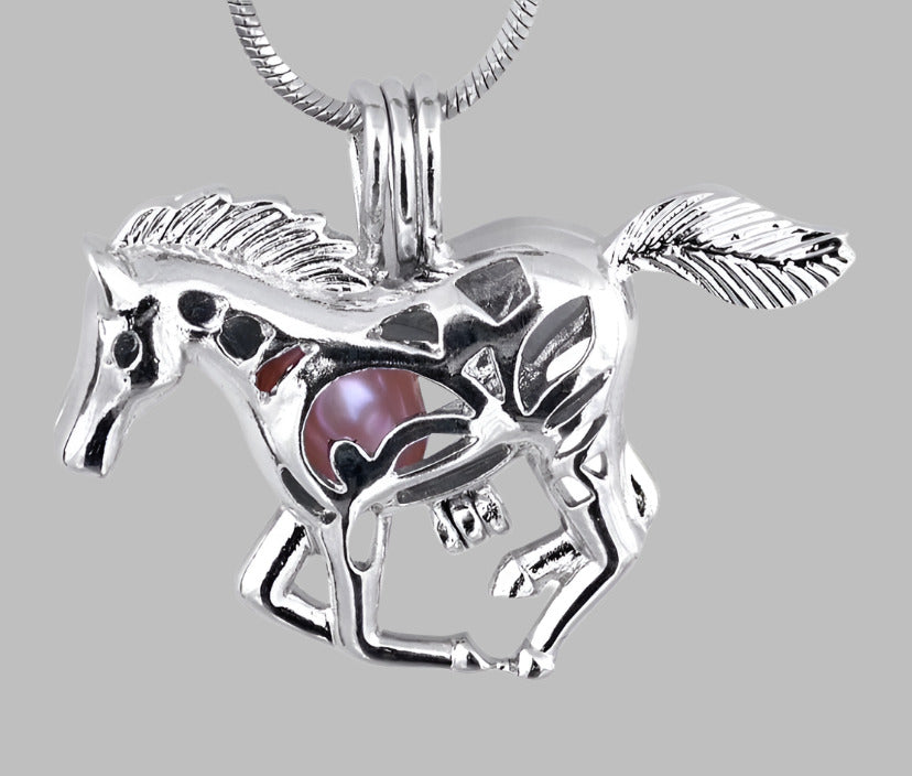 Silver plated horse cage holds pearls up to 8mm. Create different looks with easy to change cage and match your necklace with your current colors or moods.