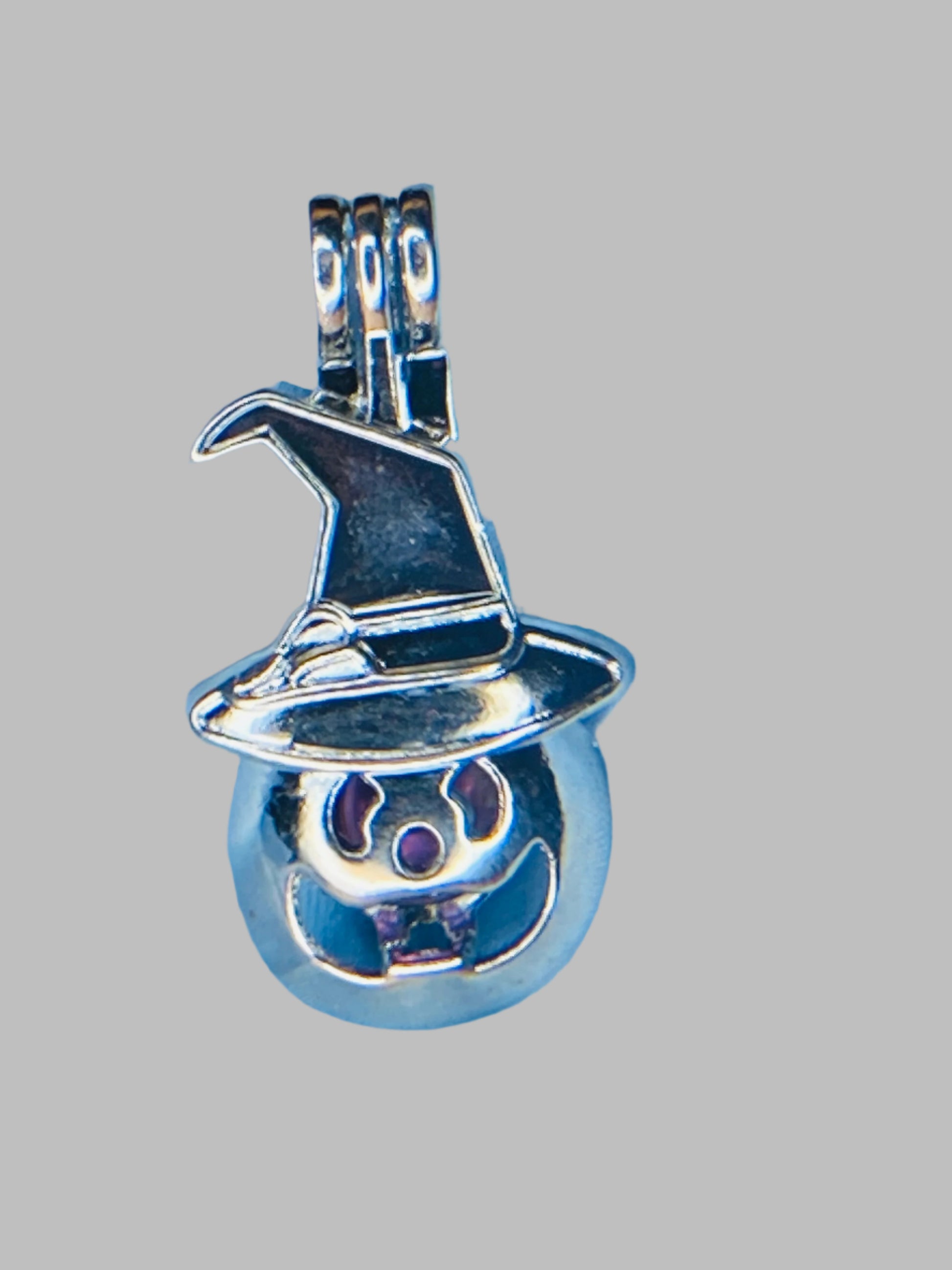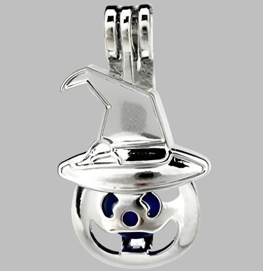 Silver plated Jack O Lantern cage holds pearls up to 8mm. Create different looks with easy to change cage and match your necklace with your current colors or moods.