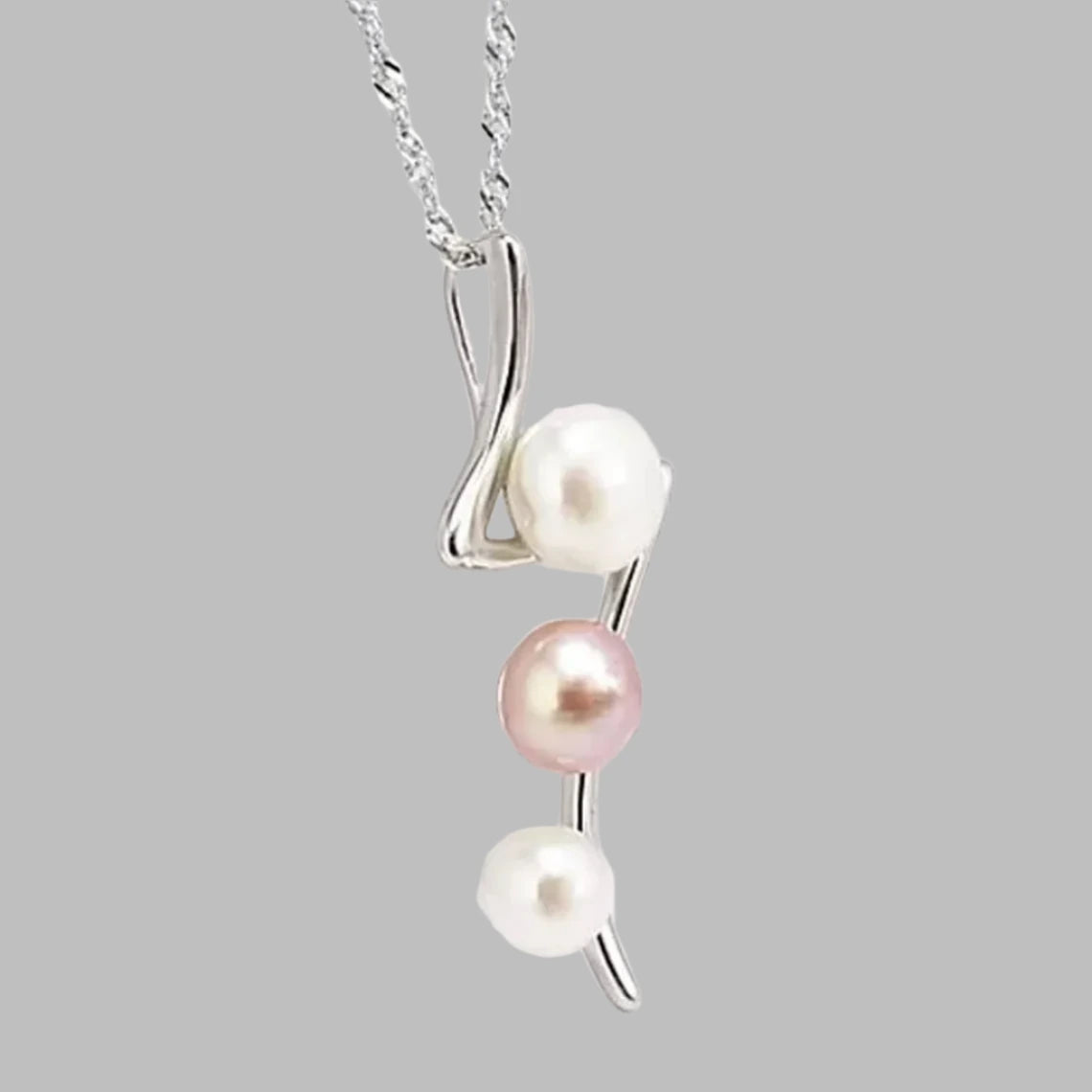 Lightning strikes! You will love our thunder bolt necklace set in sterling silver and the best part? It holds two freshwater and one Edison pearl.