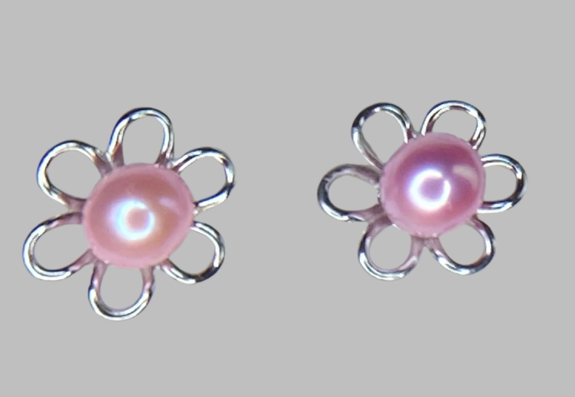 Sterling silver post-style flower earrings hold pearls up to 8mm.