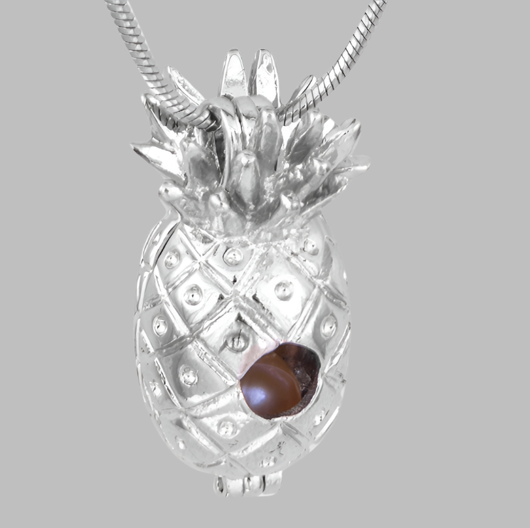 Silver plated pineapple cage holds pearls up to 8mm. Create different looks with easy to change cage and match your necklace with your current colors or moods.