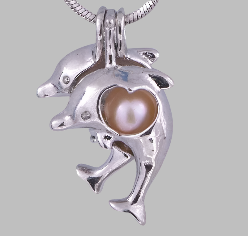 This adorable dolphin cage holds pearls up to 8mm. Create different looks with easy to change cage and match your necklace with your current colors or moods.