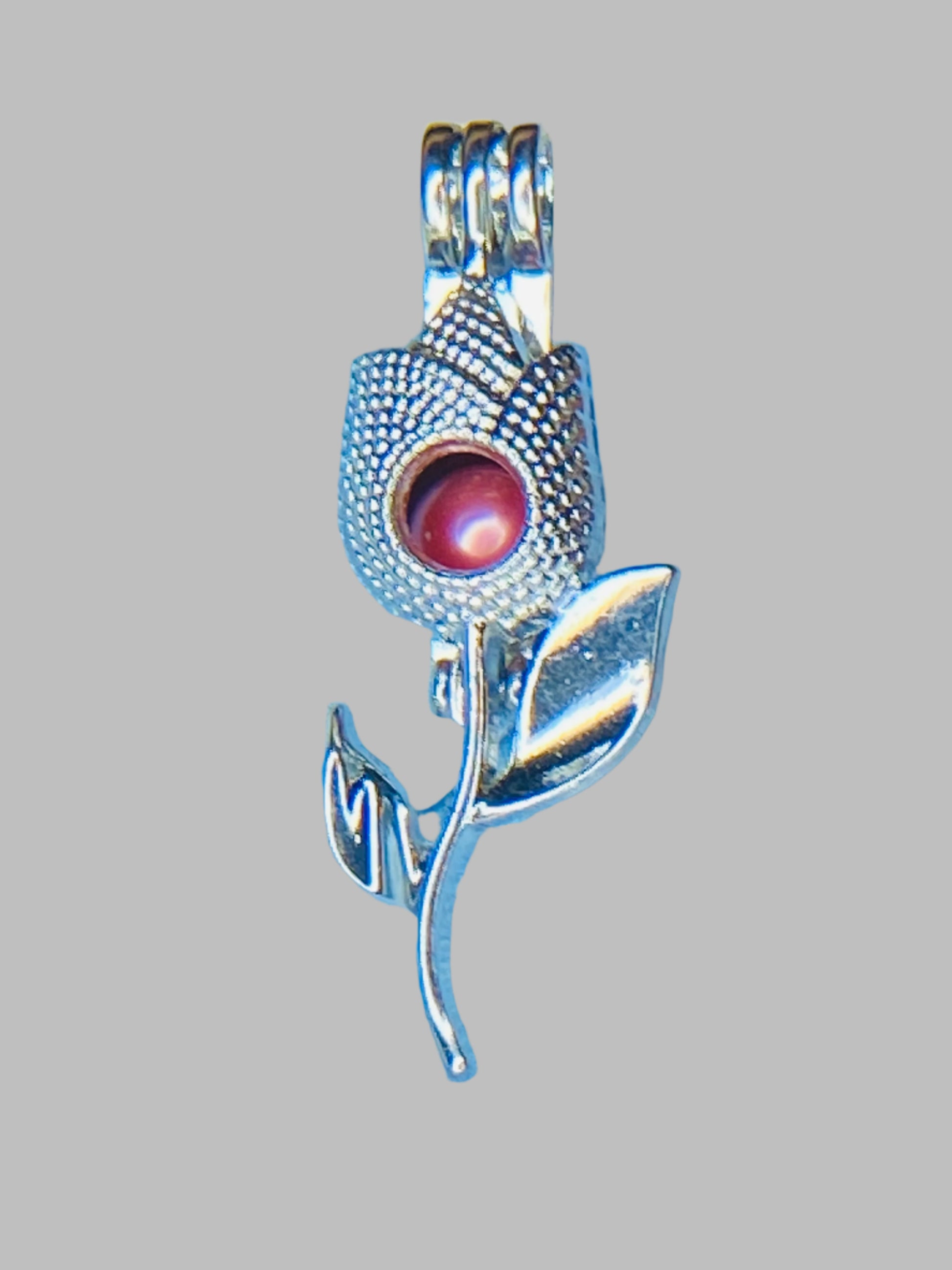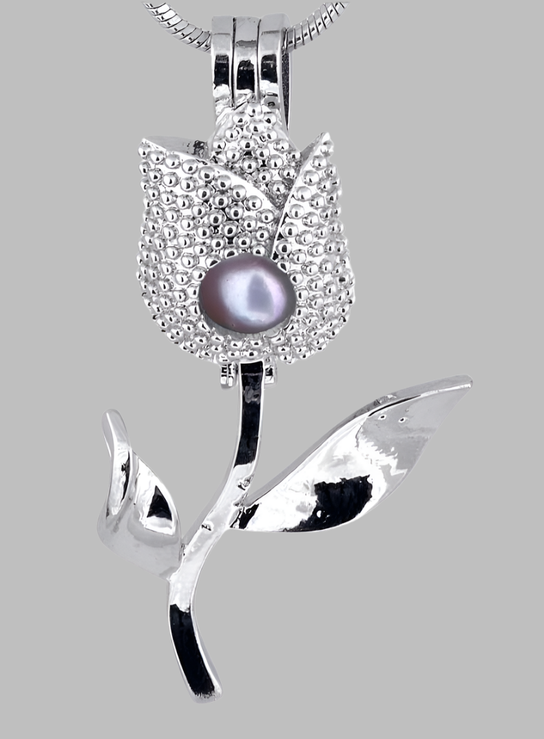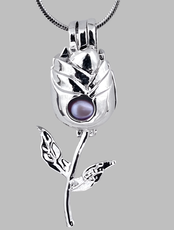 Silver plated rose cage holds pearls up to 8mm. Create different looks with easy to change cage and match your necklace with your current colors or moods.
