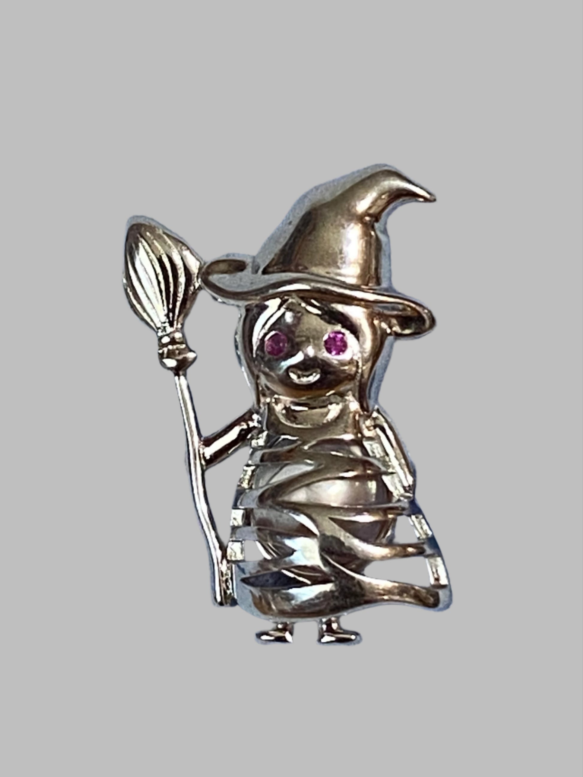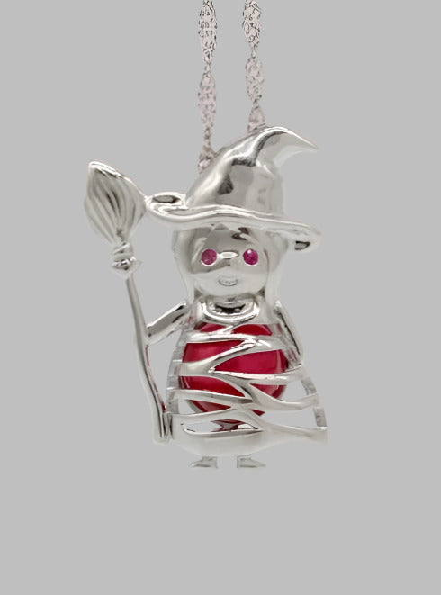 Sterling silver little witch cage has pink crystal eyes and holds a freshwater pearl up to 6.5mm. Create different looks with easy to change cage and match your necklace with your current colors or moods.