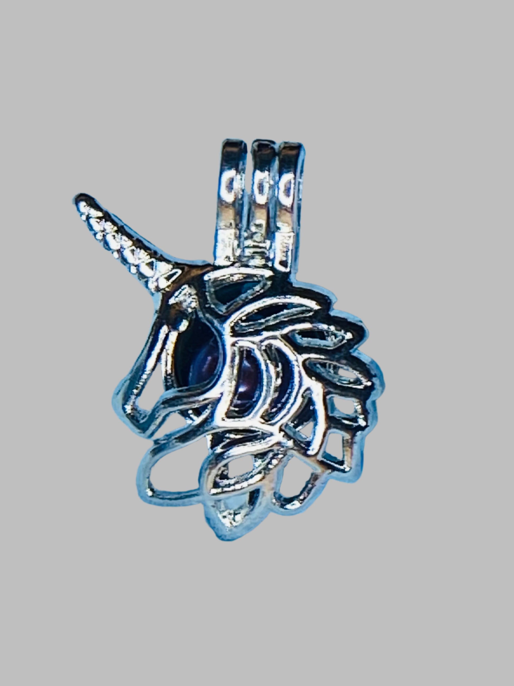 This enchanting unicorn cage holds pearls up to 8mm. Create different looks with easy to change cage and match your necklace with your current colors or moods.
